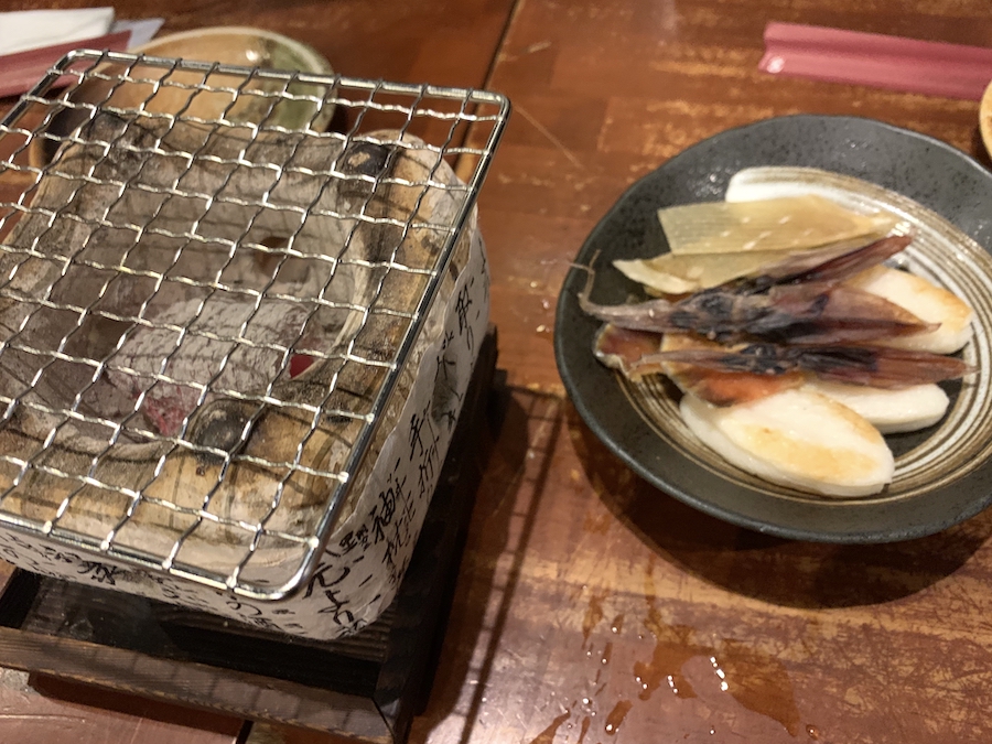 と、メニューを眺めていたらなぜか七輪が運ばれてくる。