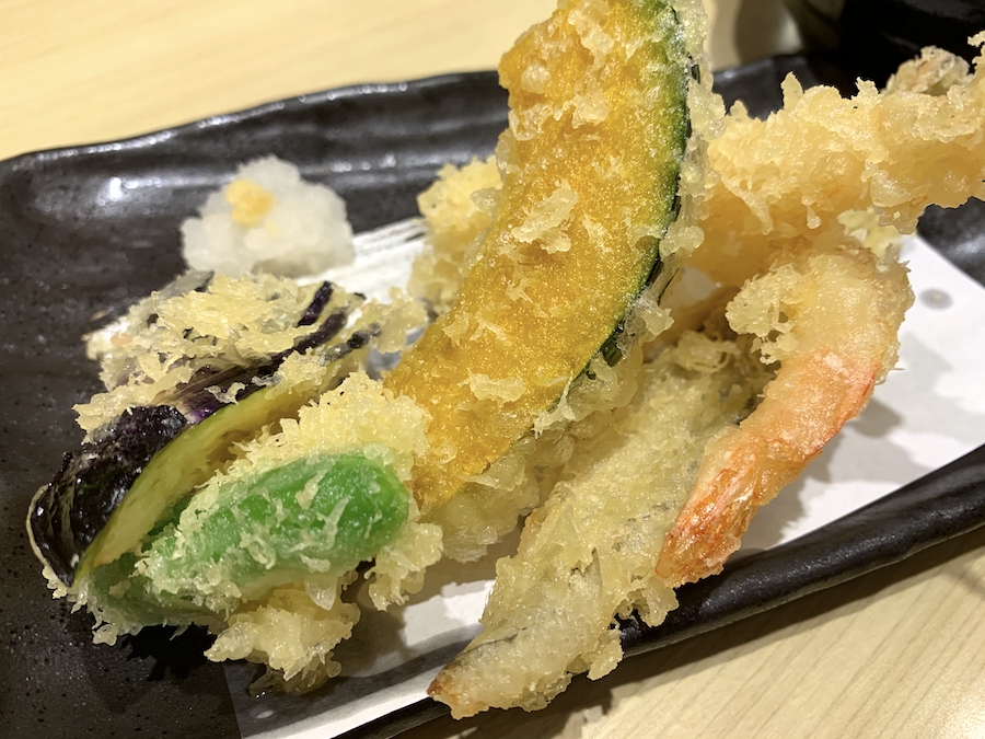 エビにナスにかぼちゃやシシトウなど、王道の盛り合わせといった感じだ。