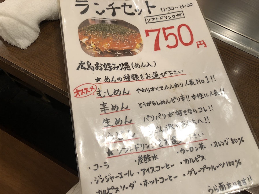 ランチ時は「ランチセット」があり広島お好み焼きをリーズナブルに頂けます♪