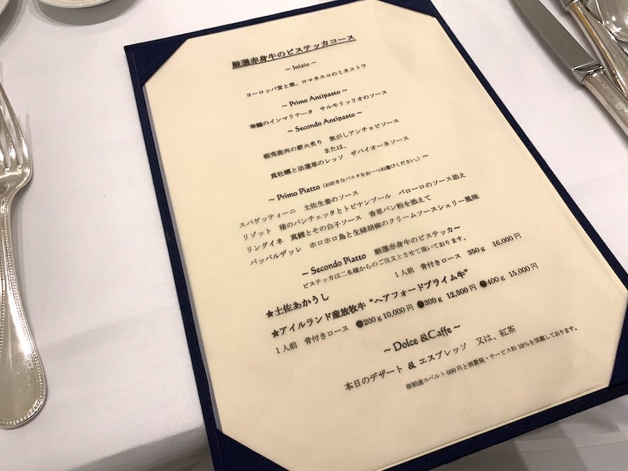 アンティパストやパスタはチョイスできるようで、どうやら肉のチョイスで金額が変わってくるようだ。