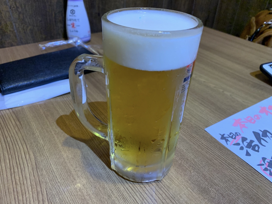 アサヒスーパードライ生中ジョッキ(550円)さぁ、まずは生ビールを注文!