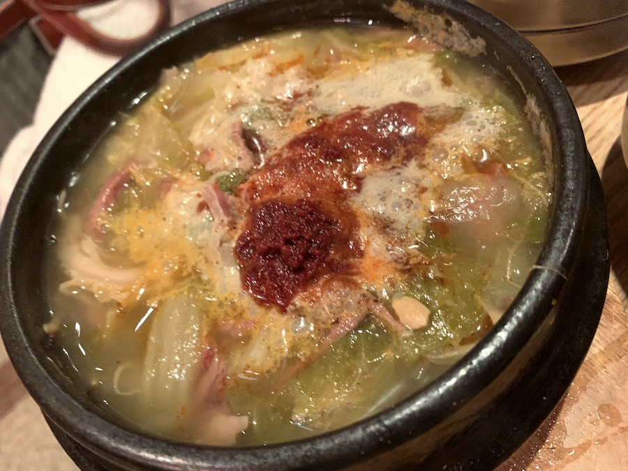 ウゴジヘジャンクとは白菜などの野菜が入った辛いスープで、なかなかパンチがあって良い!