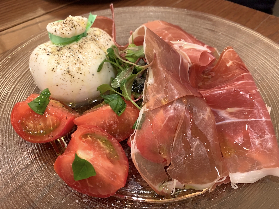 そして生ハムも乗っており、非常に贅沢な一皿になっている。