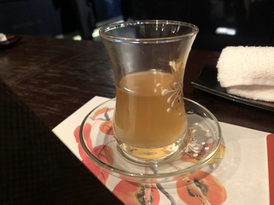 まずコンソメスープのような一口サイズのスープが出てきた。