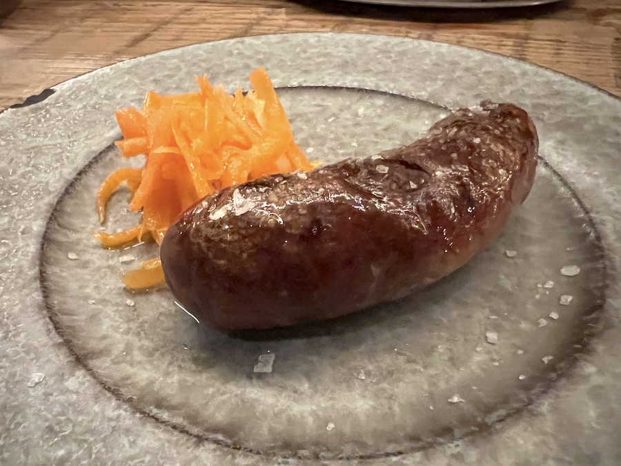 自家製最上鴨のサルシッチャと季節野菜のラペ鴨のサルシッチャは初めて食べたが、肉汁が溢れるがくどい感じもなくとても美味!